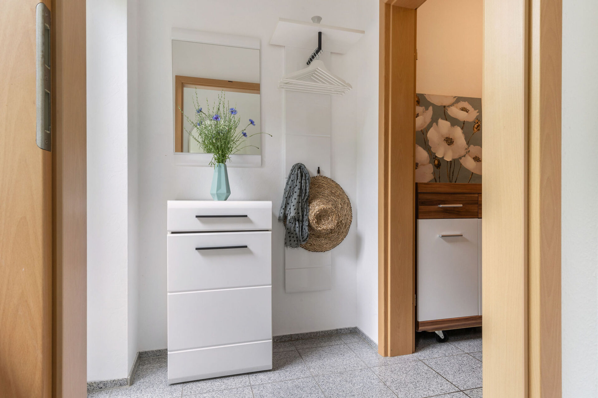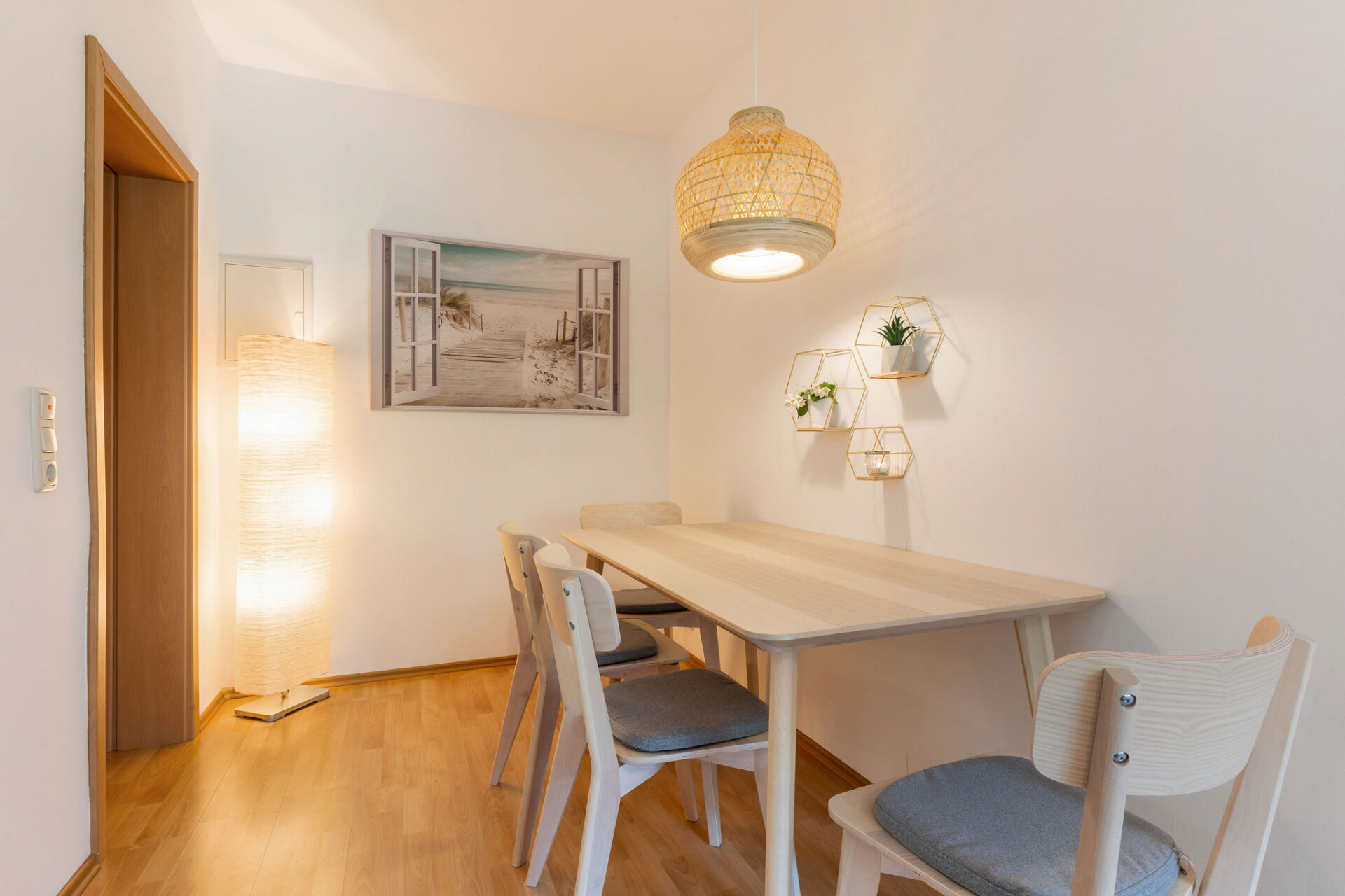 Die Monteurswohnung Apfelblüte verfügt über 63 m² Wohnfläche sowie eine Terrasse.